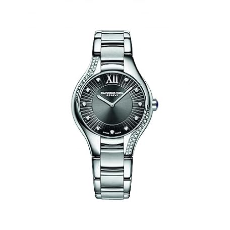 RAYMOND WEIL Noemia Women's Watch, Quartz, Grey Dial, Roman Numerals, 47 Diamonds, Stainless Steel, 32 mm (Model: 5132-S1S-60181)