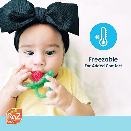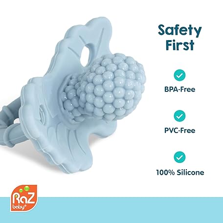 Thông tin sản phẩm RaZbaby RaZberry Silicone Teether Pacifier – Teething Relief for Infants, Food-Grade, BPA-Free, Hands-Free Design, Natural Berrybumps Fruit Texture for Sensory Development, Freezable – Cookies & Cream