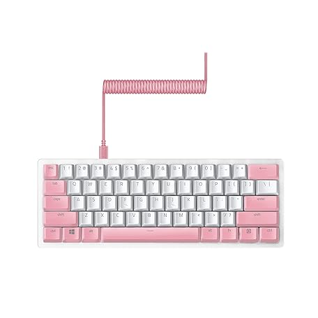 • Razer Huntsman Mini 60% Gaming Keyboard + PBT Keycap + Coiled Cable Upgrade Set Bundle: Mercury White/Clicky Optical - Quartz Pink