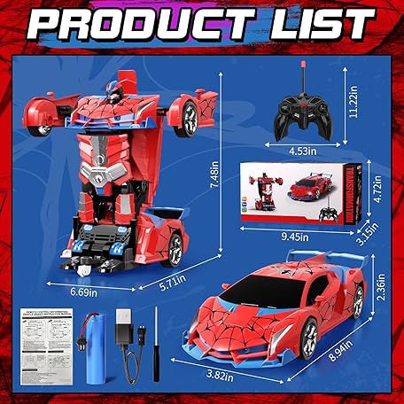 Thông tin sản phẩm RC Car for Kids, Remote Control Car One-Button Transformation to Robot, 1:18 Transforming Toys with Lights & Controller, 360°Rotation Toy Cars, Birthday Gifts for 3 4 5 6 7 8 9 10 Year Old Boys
