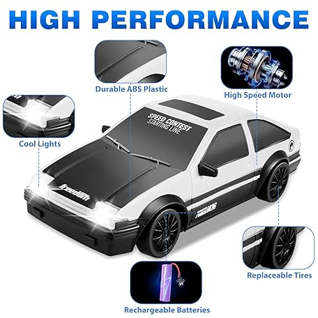 Thông tin sản phẩm RC Drift Car 1/24 2.4GHz Remote Control Cars, 4WD High Speed Drift RC Cars with Cool LED Lights, Extra Drifting Tires Racing Toys Car for Kids Boys Girls Adults (White)