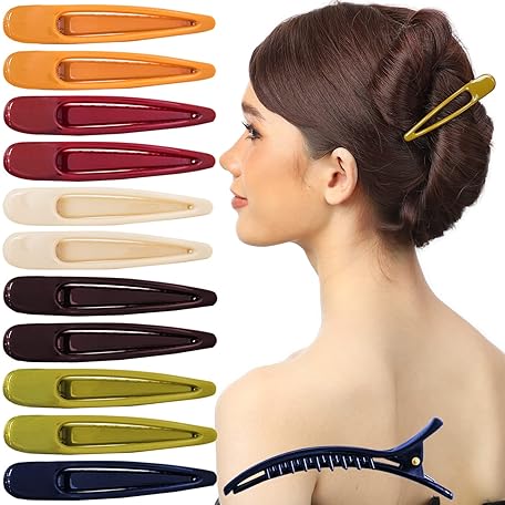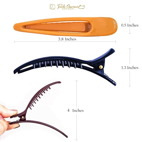 RC ROCHE ORNAMENT 12 Pcs Womens Eyelet Alligator Hair Clips Classic Simple Duckbill Professional Salon Styling Sectioning Inner Teeth Curve Durable Jaw Strong Secure Grip, Small Classic Multicolor