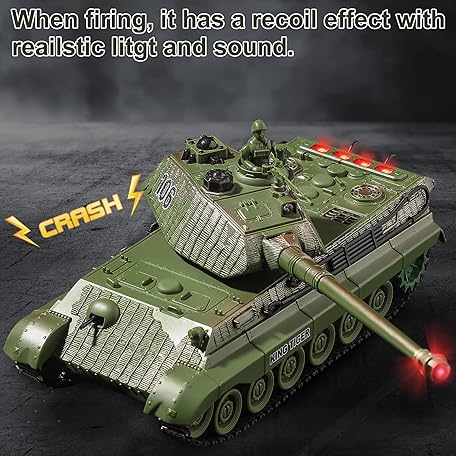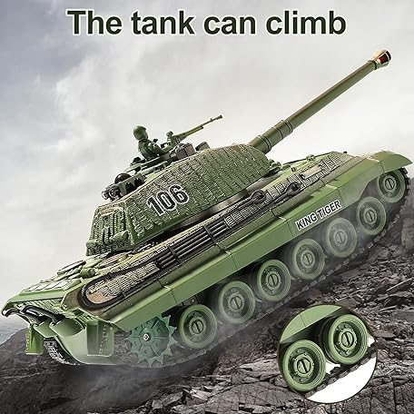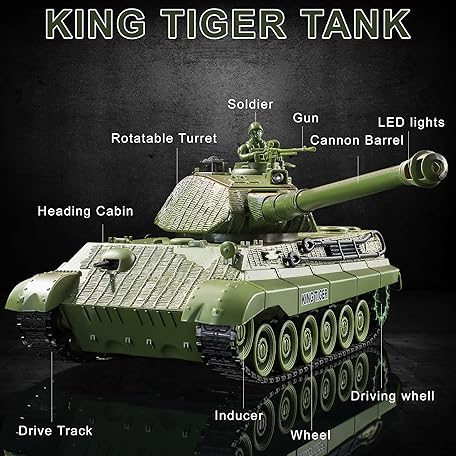 Thông tin sản phẩm RC Tank, Remote Control WW2 German King Tiger Army Tank Toys, 1:28 Scale 9 Channels RC Military Vehicles for Kids Boys,Girls Best Ages 6 7 8 9 10