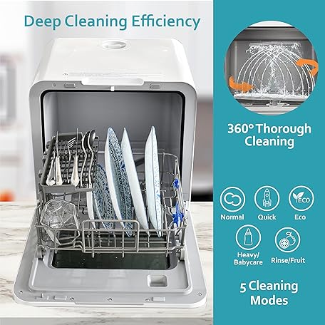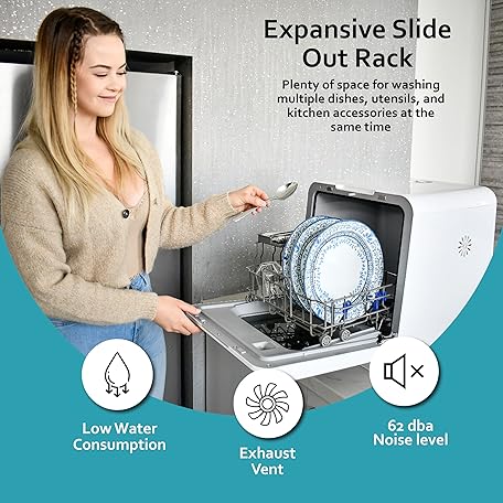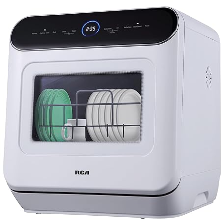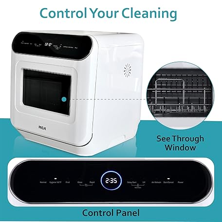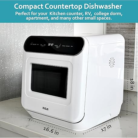 Thông tin sản phẩm RCA Portable Countertop Dishwasher No Hookup Unit with 6-Liter Water Bank for Tabletop, Apartment, or RV, Compact Dishwashing and Drying Machine, Delay Timer, Rapid Cleaning