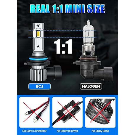 Thông tin sản phẩm RCJ 9005 Bulbs, 16000LM Super Bright HB3 Fog Light, 6000K Cool White, Real 1:1 Size Plug and Play, Canbus Ready, lP67 Waterproof, Pack of 2