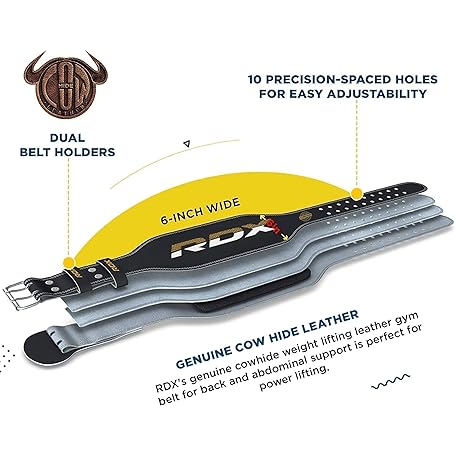 RDX Weight Lifting Belt Gym Exercise Workout, 6 inch Leather Padded Lumbar Back Support Men Women, 10 Adjustable Holes, Powerlifting Bodybuilding Deadlift, Squat Fitness Strength Training Equipment