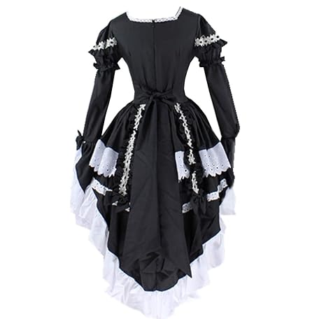 Re-Lady Women Gothic Classic Irregular Hem Princess Lolita Dress Halloween Cosplay Maid Costume