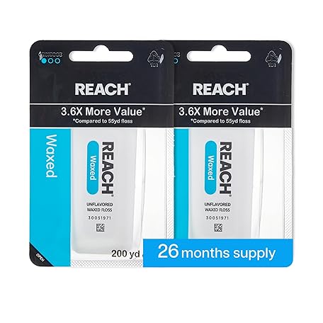 Sản phẩm REACH Waxed Dental Floss, Unflavored, 3.6X More Value, Plaque Remover for Teeth, Shred Resistant, Floss Slides Smoothly, Easy to Use, Waxed, Oral Care, PFAS Free, for Adults & Kids, 2 Pack, 200 yd đang được bán với giá ưu đãi là $12.1971 tại nước Mỹ.