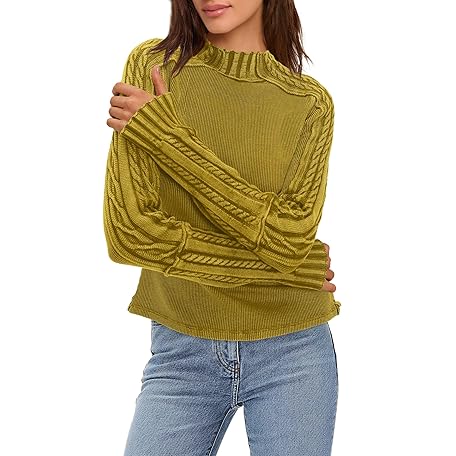 • ReachMe Womens Cable Knit Sweaters Oversized Lightweight Sweater Turtleneck Waffle Knit Tops Fall Outfits 2025