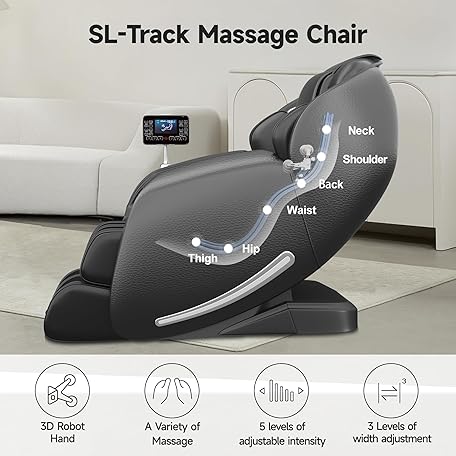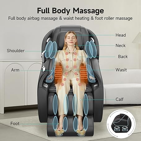 Thông tin sản phẩm Real Relax 2025 Massage Chair Full Body, Zero Gravity SL-Track Shiatsu Massage Recliner, APP Control, Child Lock, Body Scan Bluetooth Foot Roller, favor 06, All Black