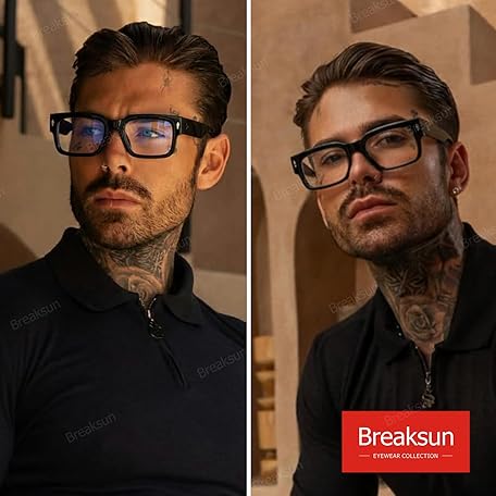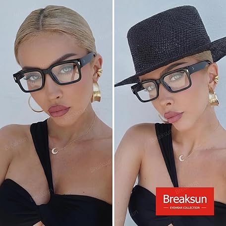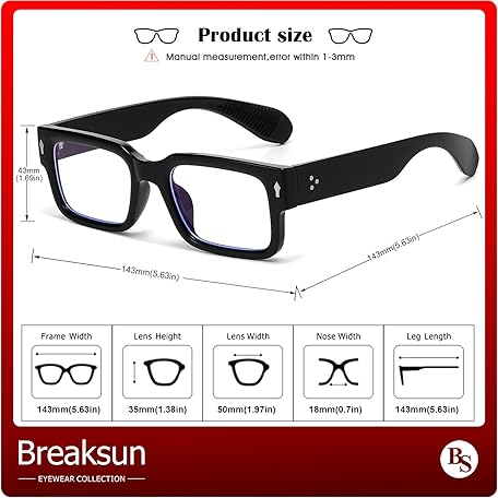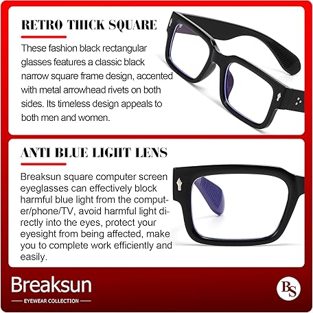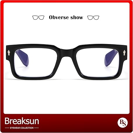 • Rectangle Glasses for Men Women Square Blue Light Glasses Thick Frame Black Eyeglasses