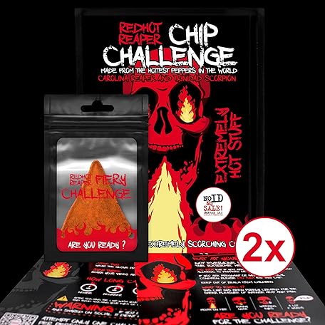 Red Hot Reaper – (2 pack) Chip Challenge Hottest Snack – Carolina Reaper Spicy Challenge - Super Spicy Hot Chip