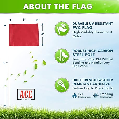 Thương hiệu ACE Supply là cái tên nổi tiếng được rất nhiều khách hàng trên thế giới chọn lựa. Với kiểu dáng đẹp mắt, sang trọng, sản phẩm Red Marking Flags 100 Pack - 4x5x15 Inch Red Flags for Yard - Markers For Lawn, Irrigation, Landscaping, Survey & Sprinkler Head Marking là sự lựa chọn hoàn hảo nếu bạn đang tìm mua một món cho riêng mình.