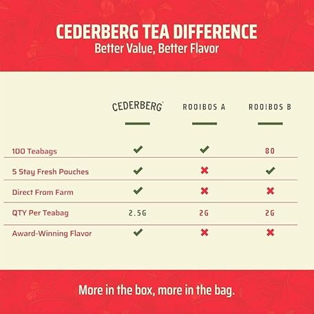 Sản phẩm Red Rooibos Tea 100 Teabags USDA Organic - Naturally Caffeine Free - Cederberg Tea Company đang được bán với giá ưu đãi là $17.7125 tại nước Mỹ.