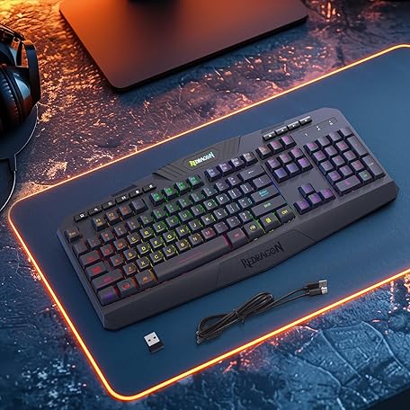 Thương hiệu Redragon là cái tên nổi tiếng được rất nhiều khách hàng trên thế giới chọn lựa. Với kiểu dáng đẹp mắt, sang trọng, sản phẩm Redragon K503 Wireless Gaming Keyboard, 3-Mode (2.4G/BT/USB), RGB LED Backlit, Multimedia Keys, Fully Programmable Silent Membrane Keyboard with Wrist Rest for Windows PC Games (Black) là sự lựa chọn hoàn hảo nếu bạn đang tìm mua một món cho riêng mình.