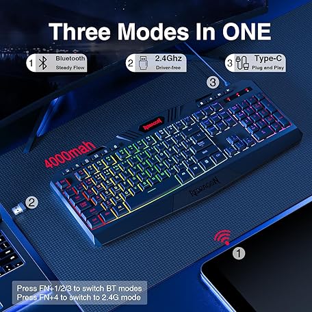 Thông tin sản phẩm Redragon K503 Wireless Gaming Keyboard, 3-Mode (2.4G/BT/USB), RGB LED Backlit, Multimedia Keys, Fully Programmable Silent Membrane Keyboard with Wrist Rest for Windows PC Games (Black)