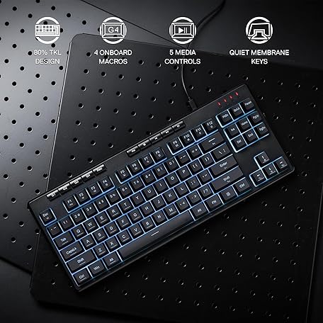 Redragon K516 Shiva TKL Wired RGB Membrane Gaming Keyboard, 87 Keys Mechanical-Feel Keyboard w/Smooth Linear Switch, On-Board Macro & Dedicated Multimedia Keys, 16.8M RGB Backlit, Software Supported