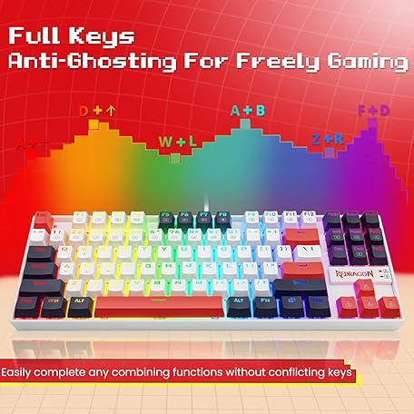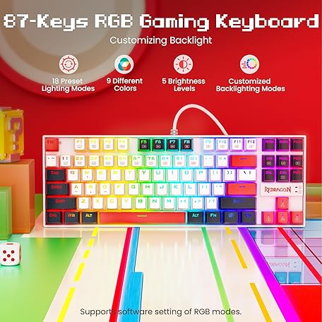 Redragon K552P Mechanical Gaming Keyboard TKL with 18 Backlight Modes, Hot-Swappable Red Switches, 87-Key Compact Ergonomic Design, N-Key Rollover & Software Programmable Macro - RGB, Neo Nocturne