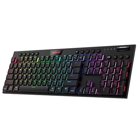 Thông tin sản phẩm Redragon K618 PRO 3-Mode Wireless RGB Mechanical Keyboard, BT/2.4Ghz/Wired Low Profile Win/Mac Gaming Keyboard w/Ultra-Thin Design, Dedicated Media Control & Linear Red Switch