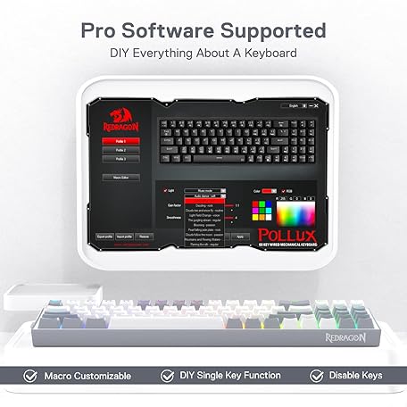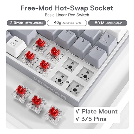 Thông tin sản phẩm Redragon K628 Pollux 75% Wired RGB Gaming Keyboard, 78 Keys Compact Mechanical Keyboard w/100% Hot-Swap Socket, Free-Mod Plate Mounted PCB & Dedicated Arrow Keys, Quiet Red Switch
