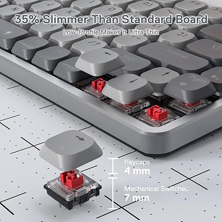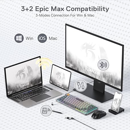 Thông tin sản phẩm Redragon K652 75% Wireless RGB Mechanical Keyboard, BT/2.4Ghz/Wired Tri-Mode 84 Keys Ultra-Thin Gaming Keyboard w/Aluminum Top Plate, 100% Supported Win/Mac System & Low Profile Red Switch