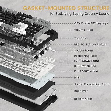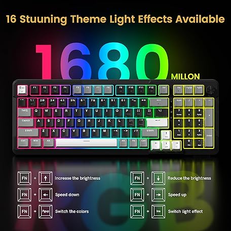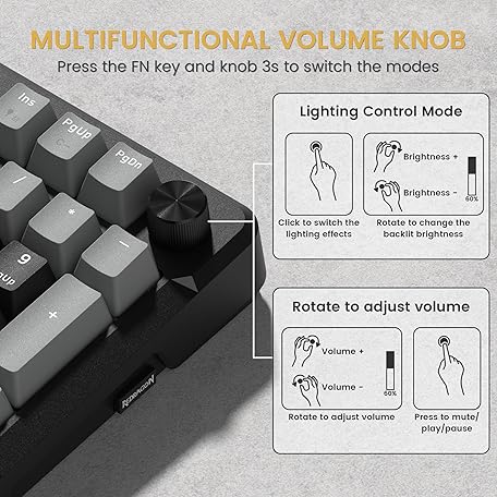 Thông tin sản phẩm Redragon K742 Wireless Mechanical Gaming Keyboard with Knob, Bluetooth 5.0/2.4GHz/USB C Wired Creamy Keyboard with Number Pad for PC Computer, Hot Swappable RGB Backlits, Custom Linear Switch, Black