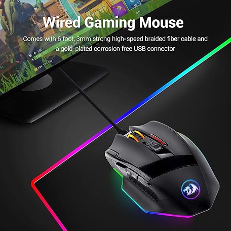 Thông tin sản phẩm Redragon M801 Gaming Mouse, RGB PC Gaming Mouse MMO with 9 Programmable Buttons Macro Recording, 16000 DPI, Fire Button for Gaming Windows Computer - Wired, Black