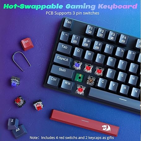 Thông tin sản phẩm Redragon Mechanical Gaming Keyboard Wired, 11 Programmable Backlit Modes, Hot-Swappable Red Switch, Anti-Ghosting, Double-Shot PBT Keycaps, Light Up Keyboard for PC Mac