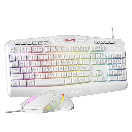 Thông tin sản phẩm Redragon Updated Programmable Gaming Keyboard and Mouse, RGB Backlit Keyboard Mouse with Software, Independent Macro Record Keys, Value Combo Set, White - S101-3 PRO