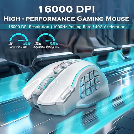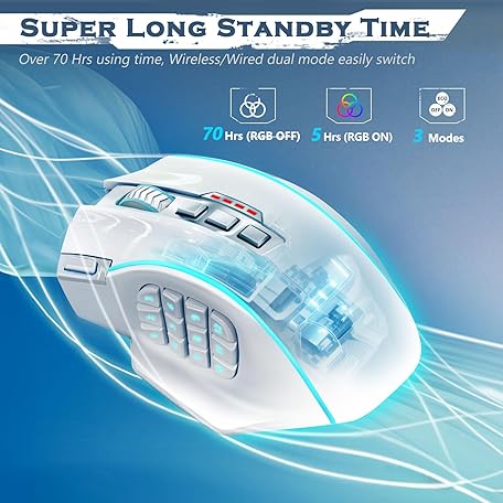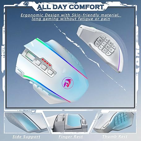Thông tin sản phẩm Redragon Wireless Gaming Mouse, MMO Gaming Mouse UP 16,000 DPI, 16 Macro Programmable Buttons, RGB Rechargeable Mouse with 12 Side Buttons, 70Hrs for PC Laptop MOBA FPS, White,M901P-WS