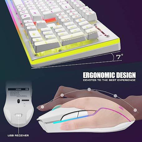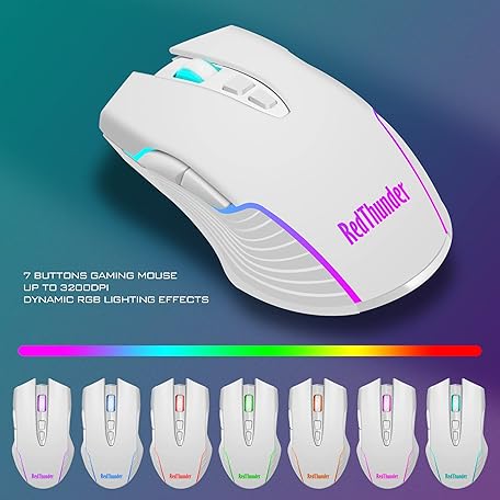 Thông tin sản phẩm RedThunder K10 Wireless Gaming Keyboard and Mouse Combo, LED Backlit Rechargeable 3800mAh Battery, Mechanical Feel Anti-ghosting Keyboard + 7D 3200DPI Mice for PC Gamer (White)