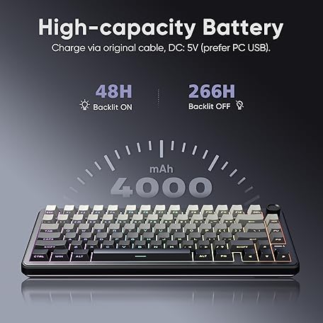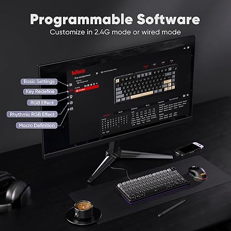 RedThunder K75 Wireless Mechanical Gaming Keyboard, 75% Hot Swappable Creamy Keyboard with Knob, RGB Backlit, Pre-lubed Linear Switches, Side Printed PBT Keycaps, Wireless/Wired/BT5.0 Connection Mode