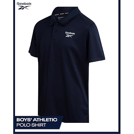 • Reebok Boys Polo Shirt - Dry Fit Performance Short Sleeve Collared Golf Shirt - Moisture Wicking Boys Athletic Shirts