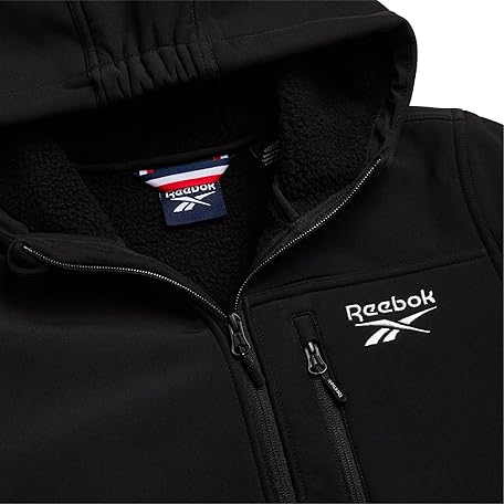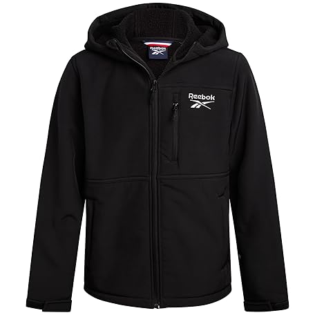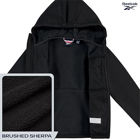 • Reebok Boys Softshell Jacket - Soft Cozy Brushed Sherpa Fleece Lined Softshell Winter Coat Hooded Windbreaker Jacket for Boys
