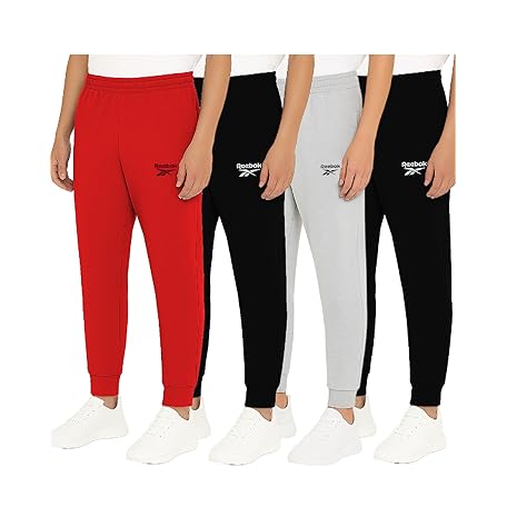 Reebok Boys Sweatpants - 4 Pack Soft Performance Fleece Boys Joggers Athletic Pants with Pockets for Gym Running and Workout