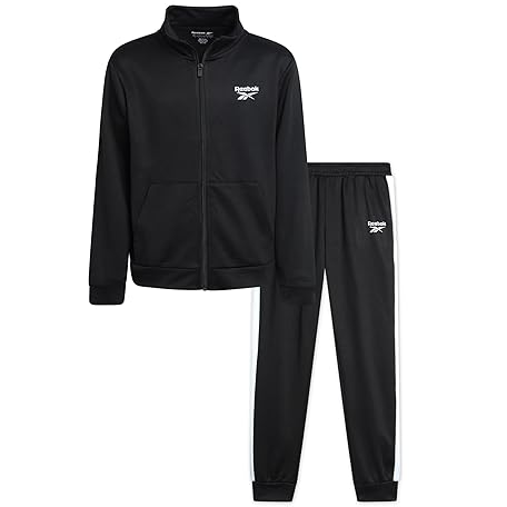 Reebok Boys Tracksuit Set - 2 Piece Athletic Tricot Fleece Lined Zip Up Jacket and Boys Sweatpants for Toddlers & Big Boys