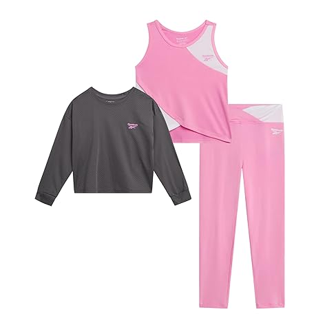 Reebok Girls' Active Pants Set - 3 Piece Cropped Hoodie Tank Top and Yoga Pants Leggings (Sizes: 7-12)