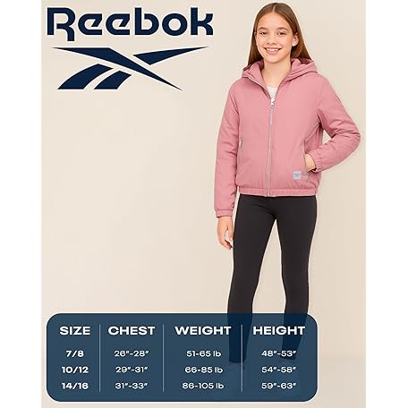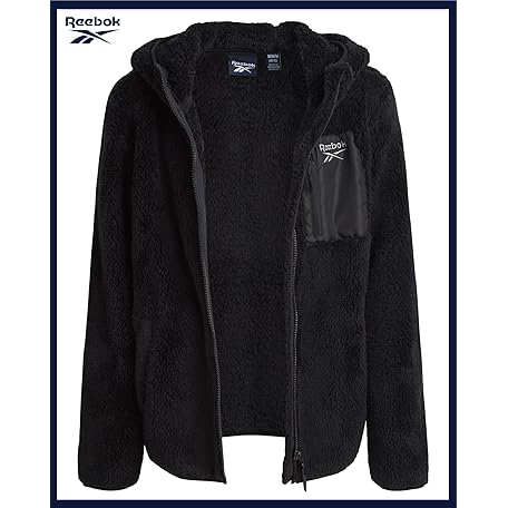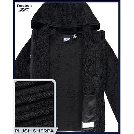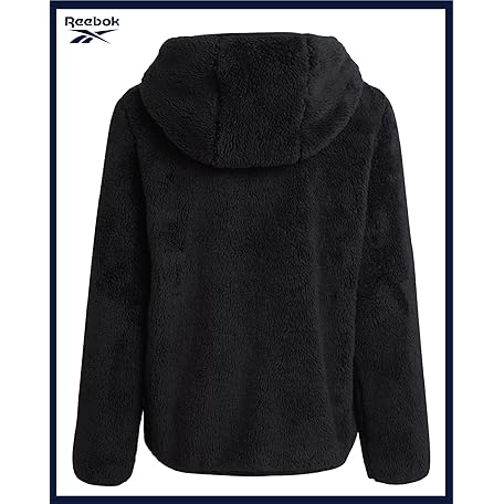• Reebok Girls Fleece Jacket - Full Zip Soft Sherpa Faux Fur Coat Hooded Winter Jacket - Warm Teddy Coat for Girls