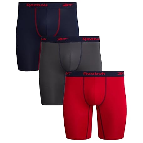 Reebok Mens Boxer Briefs - 3 Pack 9'' Inseam Performance Compression Underwear for Men - Soft Mens Long Leg Boxer Briefs