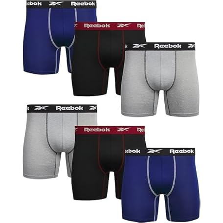 Reebok Mens Boxer Briefs - 6 Pack 6'' Inseam Soft Stretch Performance Mens Underwear Athletic Boxer Briefs with Contour Pouch