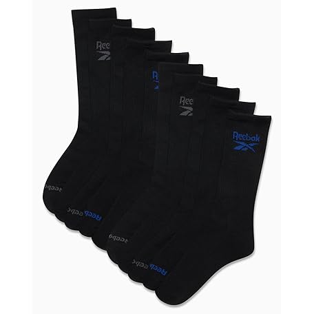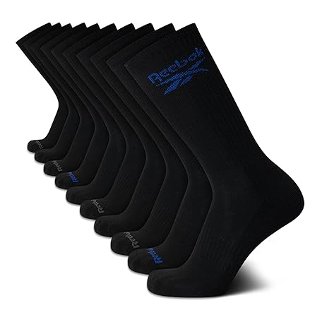 • Reebok Men's Crew Socks - 10 Pack Stretch Performance Cushioned Crew Socks - Arch Support Athletic Socks for Men (6-12.5)