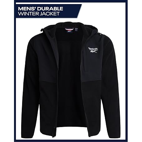 • Reebok Mens Fleece Jacket - Lightweight Polar Fleece Zip Up Winter Jackets for Men - Gym Workout Running Outdoor Mens Jacket