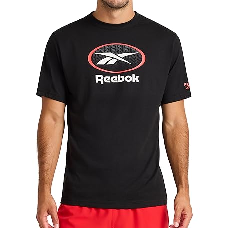 Reebok Mens Vertigo Crewneck T-Shirt, Standard Fit, Lightweight Cotton-Poly Jersey Fabric