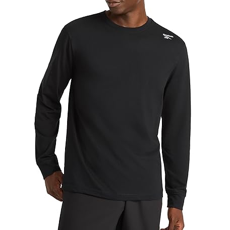 Reebok Mens Volt Long Sleeve Crewneck T-Shirt, Standard Fit, Lightweight Cotton-Poly Jersey Fabric