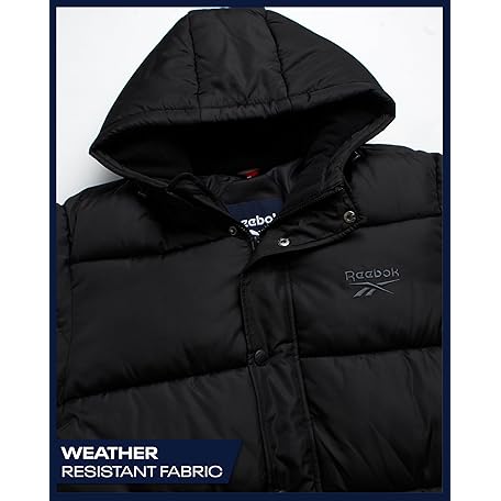 • Reebok Mens Winter Jacket - Heavyweight Insulated Mens Winter Coat - Wind Water Resistant Quilted Puffer Jackets for Men
