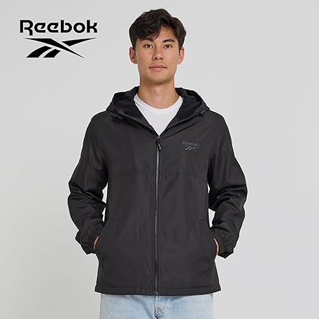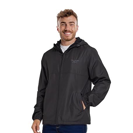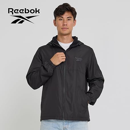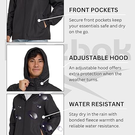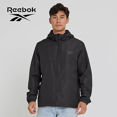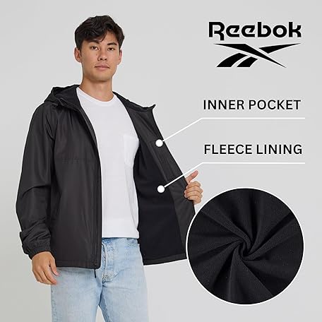 • Reebok Rain Jacket Men with Hood, Windbreaker Men Lightweight Waterproof Jacket