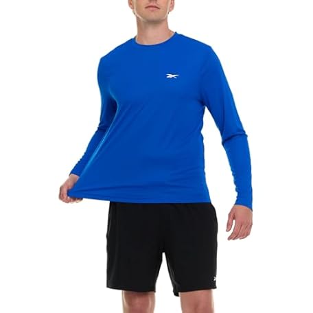 Reebok Rash Guard for Men, Long Sleeve Mens Swim Shirt, Fishing Hiking UPF+ 50 UV Protection