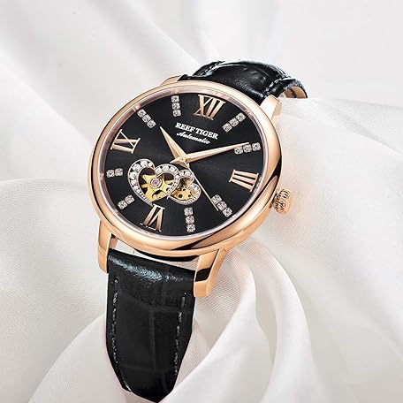 Sản phẩm REEF TIGER Luxury Brand Women Watches Rose Gold Automatic Watches Leather Strap Diamond Watch RGA1580 đang được bán với giá ưu đãi là $248.52 tại nước Mỹ.