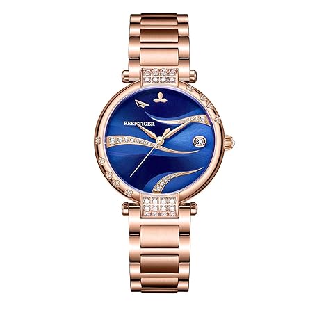 REEF TIGER Red Dial Rose Gold Luxury Fashion Diamond Women Watches Stainless Steel Bracelet Automatic RGA1589