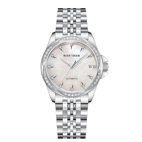 REEF TIGER Top Brand Luxury Women Steel Diamond Fashion Automatic Watch RGA1583-2
